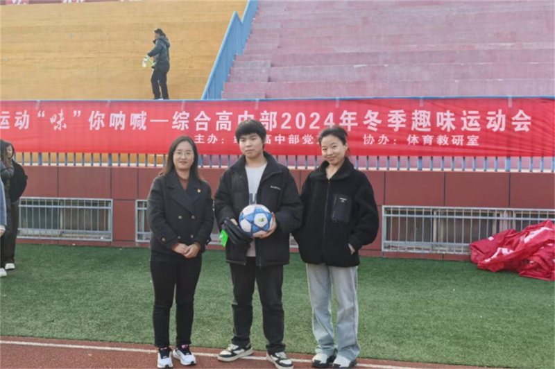 為了深入貫徹黨的教育方針,落實立德樹人根本任務(wù),豐富校園文化生活,促進學(xué)生德智體美勞全面發(fā)展,綜合高中部黨支部積極開展“黨建+學(xué)生體質(zhì)健康”活動,11月22日聯(lián)合教務(wù)處體育教研室、后勤服務(wù)中心衛(wèi)生所,組織召開主題為“‘趣’享運動 ‘味’你吶喊”2024年冬季趣味運動會。黨委委員、工會主席李瑞芳出席開幕式并致辭,綜合高中部黨支部全體黨員、綜合高中部全體師生參加。開幕式由綜合高中部黨支部書記王展繪主持。
