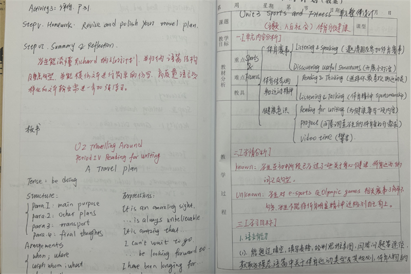 各學科教案特色鮮明,框架清晰,圖文并茂。一行行工整的書寫,蘊含著老師們的認真和用心;一處處細致的標注,彰顯著老師們一絲不茍的態(tài)度;一句句真誠的反思,體現(xiàn)著老師們深耕課堂、認真鉆研的精神。