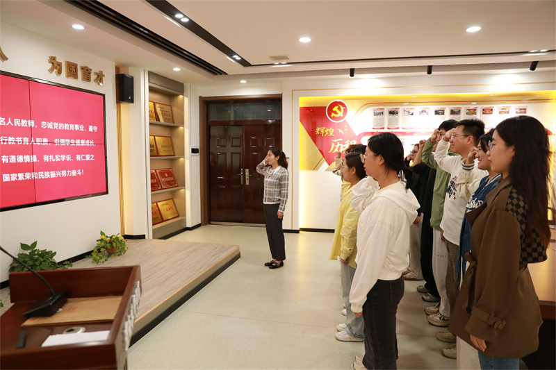 匯報(bào)結(jié)束后,舉行了莊嚴(yán)的教師宣誓儀式。21名新教師整齊列隊(duì),右手握拳,在領(lǐng)誓人的帶領(lǐng)下莊嚴(yán)宣誓,鏗鏘有力的宣誓聲響徹會(huì)場(chǎng),彰顯了新教師們投身教育事業(yè)的堅(jiān)定決心和崇高信念。