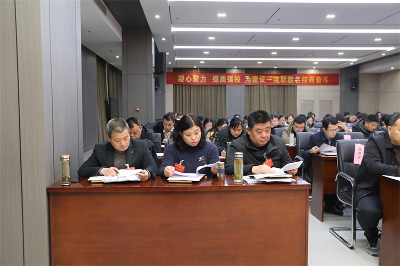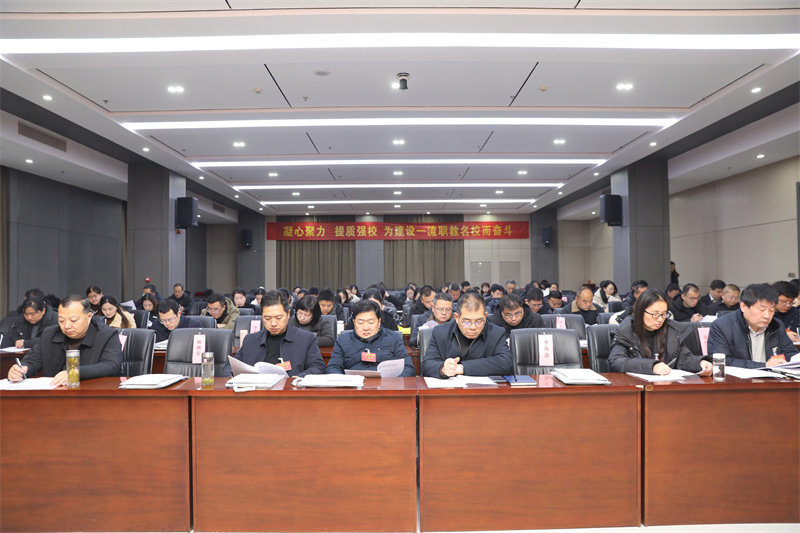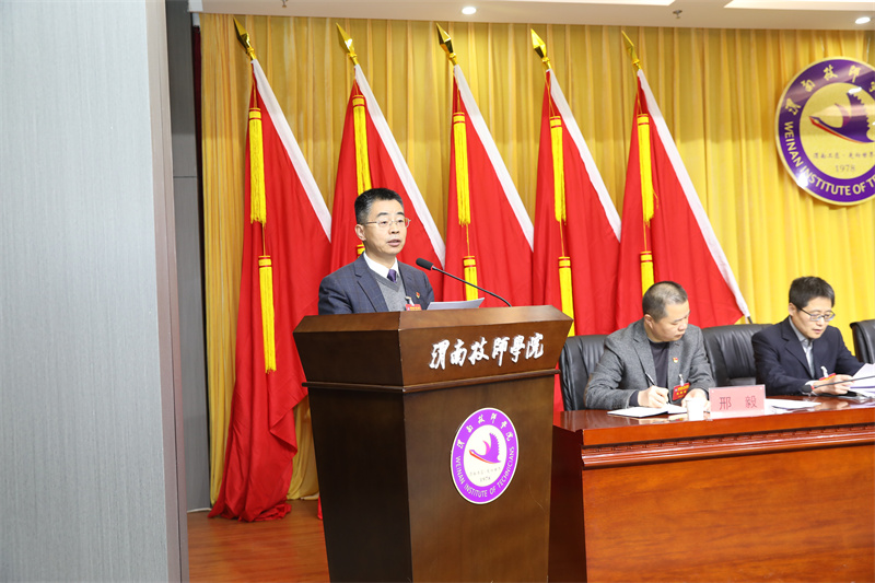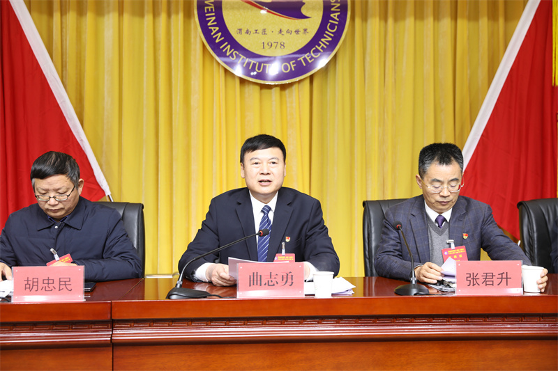 曲志勇對(duì)大會(huì)圓滿(mǎn)成功表示祝賀。他指出,教代會(huì)制度是教職工依法參與學(xué)院民主管理和監(jiān)督的基本形式,我院堅(jiān)持落實(shí)教代會(huì)制度,自第一屆第一次教代會(huì)召開(kāi)以來(lái),始終堅(jiān)持“黨委領(lǐng)導(dǎo)、校長(zhǎng)負(fù)責(zé)、教師治學(xué)、民主管理、依法治�!钡闹卫眢w系,持續(xù)暢通民意表達(dá)渠道,切實(shí)保障了教職工的知情權(quán)、參與權(quán)、表達(dá)權(quán)和監(jiān)督權(quán),讓民主管理在學(xué)院落地生根。他指出,各位與會(huì)代表以高度的責(zé)任感和使命感,認(rèn)真審議學(xué)院工作報(bào)告和工會(huì)工作報(bào)告,深入討論了績(jī)效工資分配改革辦法,緊緊圍繞學(xué)院高質(zhì)量發(fā)展重大問(wèn)題深入研討,為學(xué)院科學(xué)決策和編制“十五五”規(guī)劃,提供了寶貴的民意基礎(chǔ)和智慧支撐,充分展現(xiàn)了心系學(xué)院發(fā)展的責(zé)任擔(dān)當(dāng)。他強(qiáng)調(diào),過(guò)去一年,學(xué)院以習(xí)近平新時(shí)代中國(guó)特色社會(huì)主義思想為指導(dǎo),全面貫徹黨的教育方針,落實(shí)立德樹(shù)人根本任務(wù),踐行“112336”工作思路,錨定高質(zhì)量發(fā)展目標(biāo),全面實(shí)施提質(zhì)強(qiáng)校八大工程,聚焦“鞏固規(guī)模、提高質(zhì)量、打造特色”三大任務(wù),聚力打好“單招升學(xué)、技能大賽、優(yōu)質(zhì)招生”三場(chǎng)硬仗,構(gòu)建起“招得好、教得實(shí)、管得嚴(yán)、服務(wù)優(yōu)、發(fā)展好”的五位一體教育鏈閉環(huán),學(xué)院高質(zhì)量發(fā)展取得長(zhǎng)足進(jìn)步。他要求,立足新起點(diǎn)、奮進(jìn)新征程,全院上下要堅(jiān)守初心使命、勇于擔(dān)當(dāng)作為,聚焦學(xué)院高質(zhì)量發(fā)展目標(biāo),在六個(gè)方面持續(xù)用力、久久為功:一要筑牢思想根基,把穩(wěn)發(fā)展方向;二要深耕內(nèi)涵建設(shè),夯實(shí)辦學(xué)底蘊(yùn);三要建強(qiáng)師資隊(duì)伍,激活內(nèi)生動(dòng)力;四要提升治理效能,聚力提質(zhì)增效;五要強(qiáng)化師德鑄魂,涵養(yǎng)高尚師風(fēng);六要深化民主管理,匯聚奮進(jìn)合力。以初心踐使命,以實(shí)干顯擔(dān)當(dāng),形成上下聯(lián)動(dòng)、齊抓共管的工作格局,凝心聚力、真抓實(shí)干,奮力譜寫(xiě)學(xué)院高質(zhì)量發(fā)展的嶄新篇章!